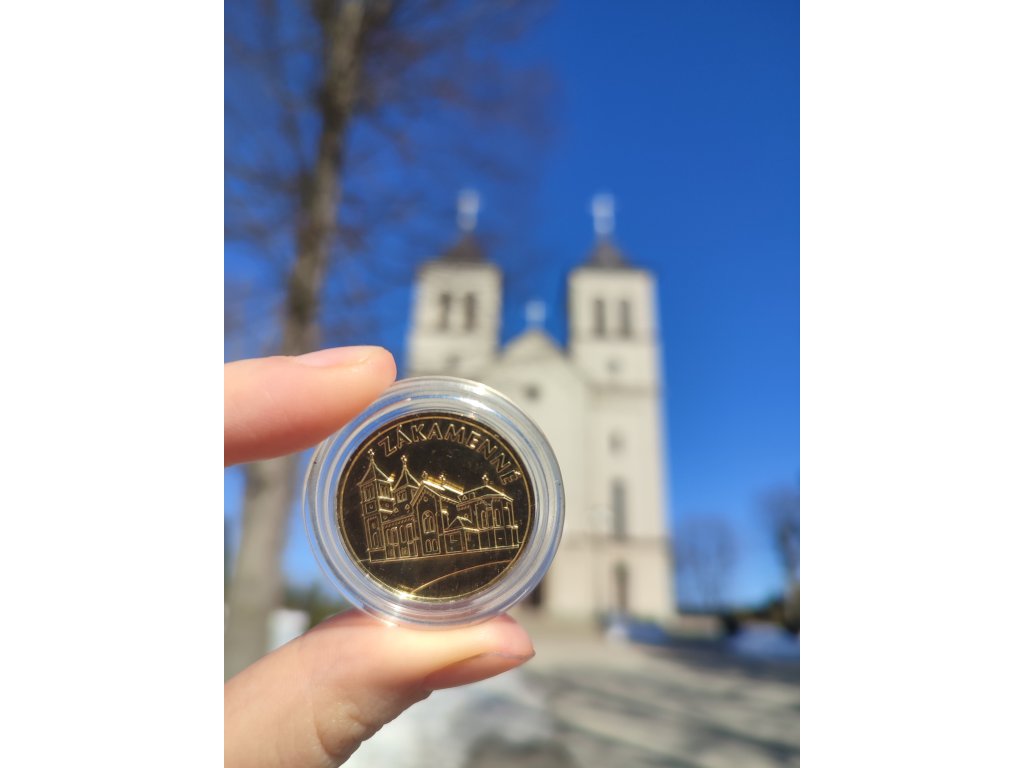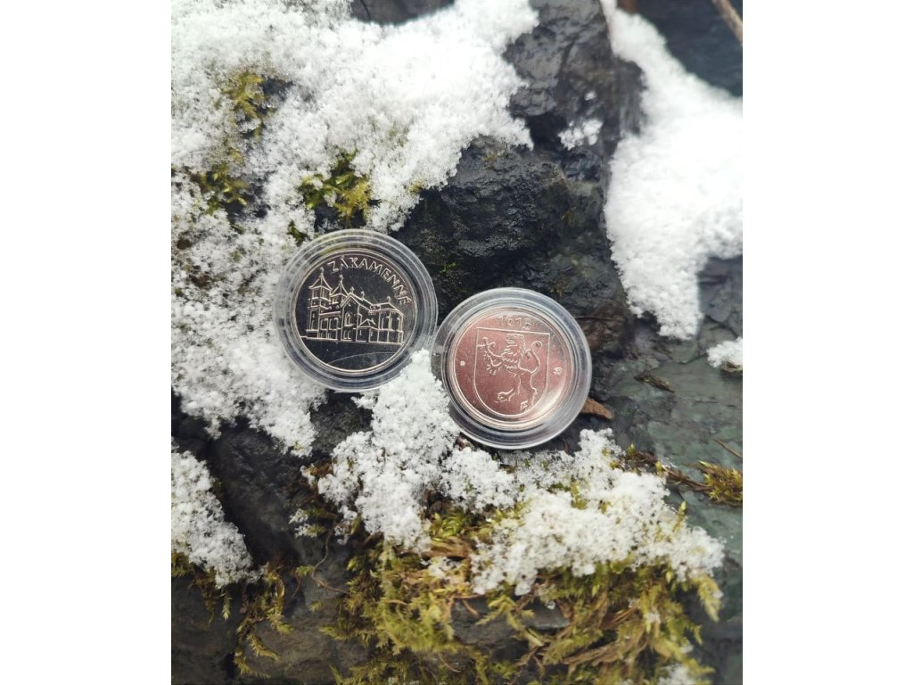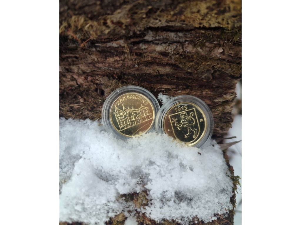 Zberateľský suvenír minca obce Zákamenné k príležitosti 400. rokov od založenia obce v zlatej alebo striebornej farbe.